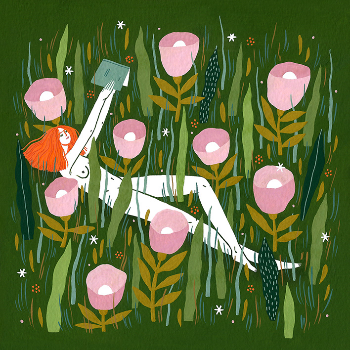 "Book Club" is a series of 12 illustrations inspired by quiet moments alone, with a good book, whenever, wherever.