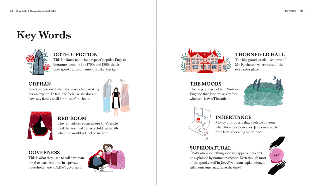 Each KinderGuide contains a condensed, simplified version of the plot, as well as a section devoted to exploring the life and cultural background of the original author. In addition, parents and teachers will also appreciate the key word definitions, a breakdown of the book’s main characters, a fun quiz, and a kid-friendly analysis of the important takeaways from each story.