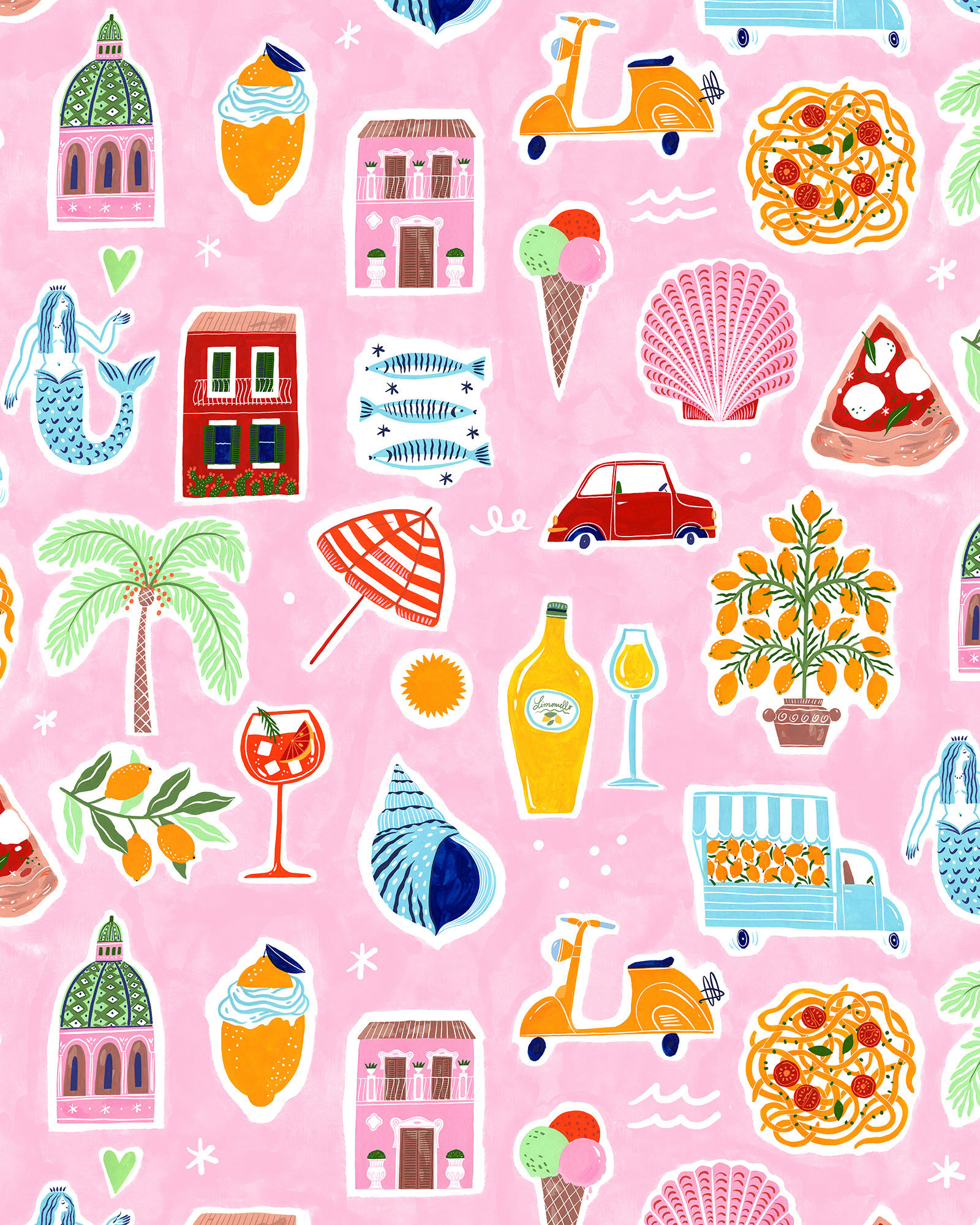 A collaboration with MILLA MILLA, a Romanian brand creating dresses with a retro touch, 50's silhouettes & natural fabrics. I created 3 prints inspired by 3 destinations: AMALFI, SANTORINI and PROVENCE.
