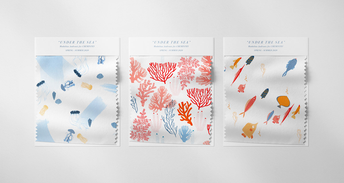 Illustrated fabric patterns for Chemistry, a Romanian fashion brand