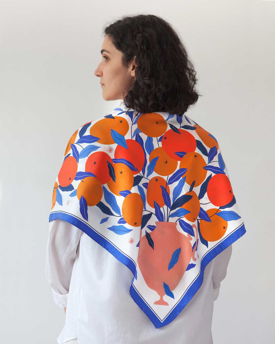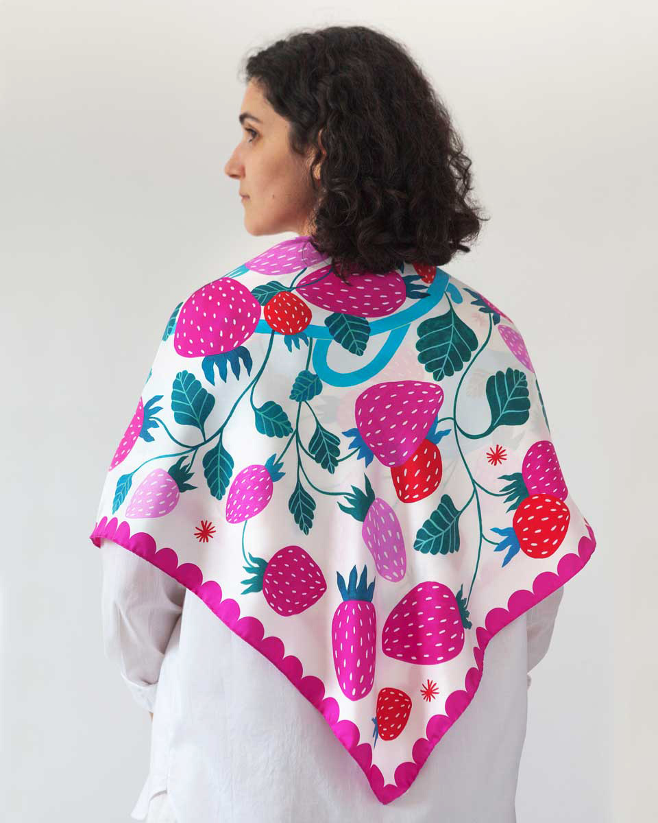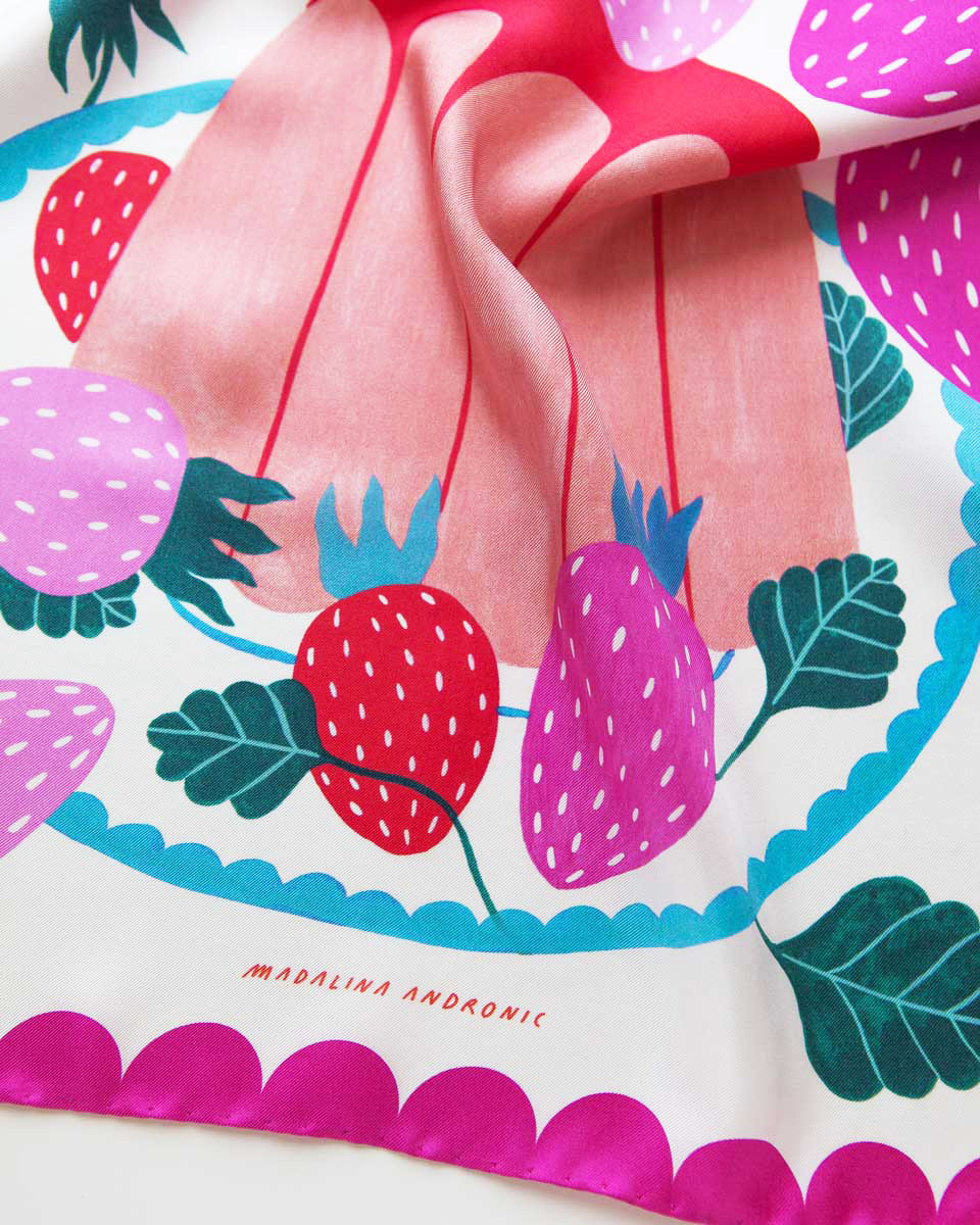 Soft, sumptuous, slippery, sweet. Just like a drop of creamy “liquore di frutta” rolling off the tongue. This is an artist’s silk scarf, imagined, designed and printed in Italy. I hope it will join you in the sweetest moments to come.