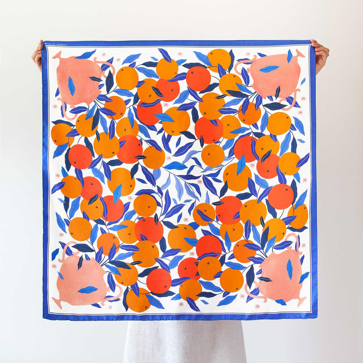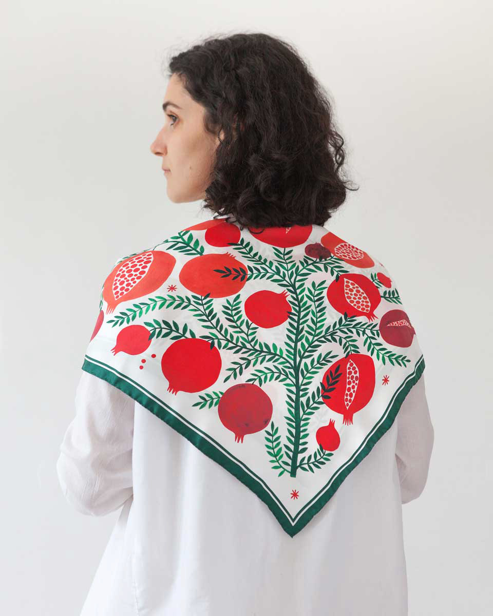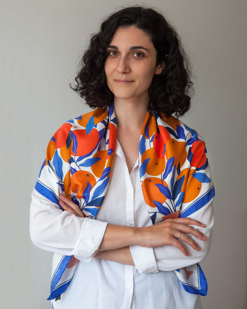 Soft, sumptuous, slippery, sweet. Just like a drop of creamy “liquore di frutta” rolling off the tongue. This is an artist’s silk scarf, imagined, designed and printed in Italy. I hope it will join you in the sweetest moments to come.