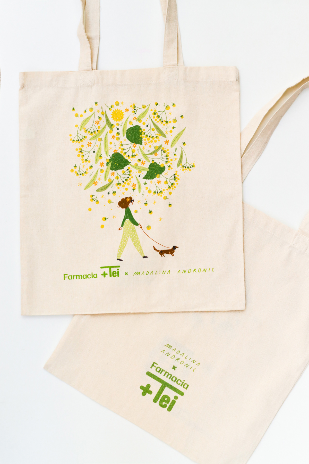 Illustrations for the reusable totebags of FARMACIA TEI,